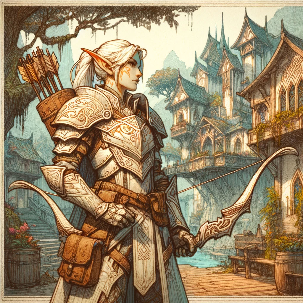 Eine elfische Wache der grünen Gardet, blickt mit Adleraugen über die elfischen Städte.