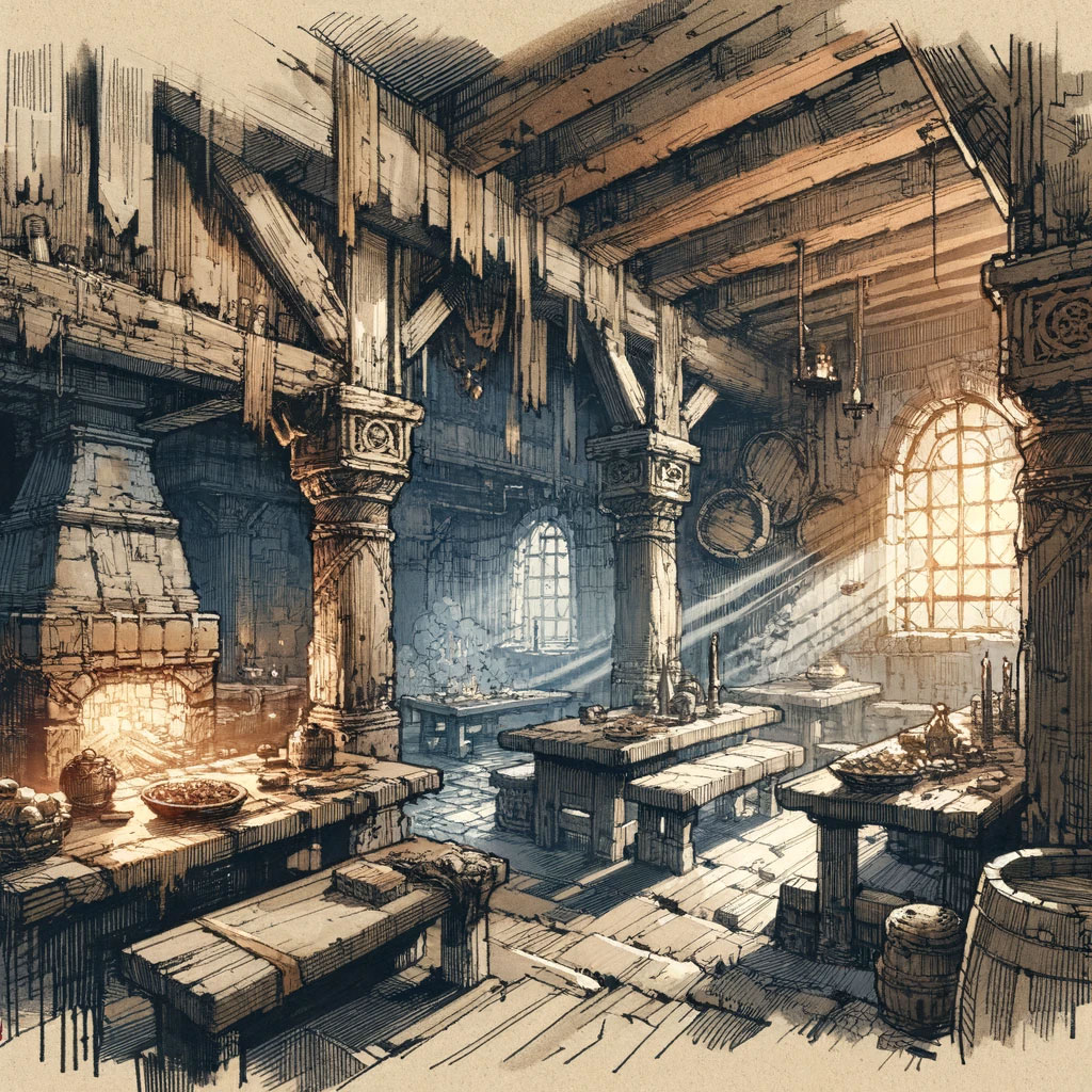Der Wurzelkeller, eine Taverne, die so alt wie Rabenfurth selbst zu sein scheint, ist ein geheimnisvoller Treffpunkt für Reisende, Einheimische und jene, die das Mysteriöse suchen.