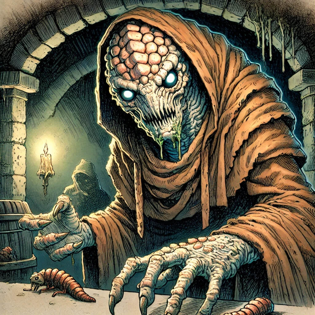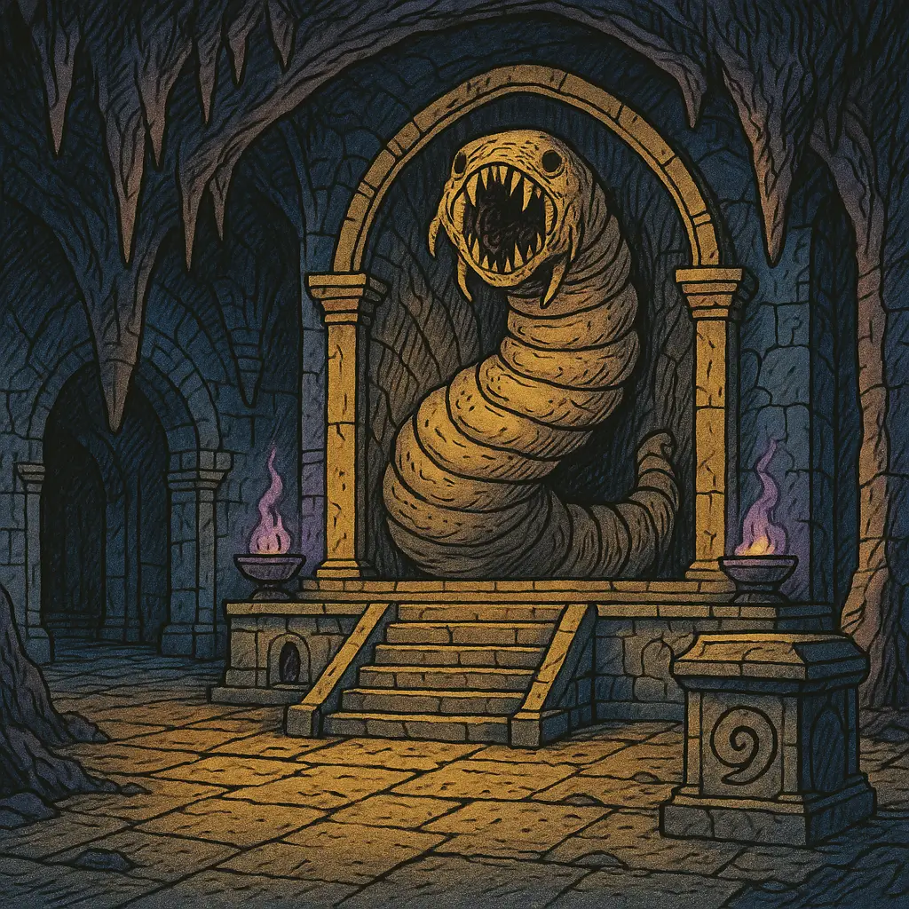 - In den tieferen Gängen des Tempels hört man gelegentlich ein fernes Kratzen, das laut alten Kultaufzeichnungen von „unfertigen Madenläufern“ stammen soll, die nie vollständig verpuppen konnten.