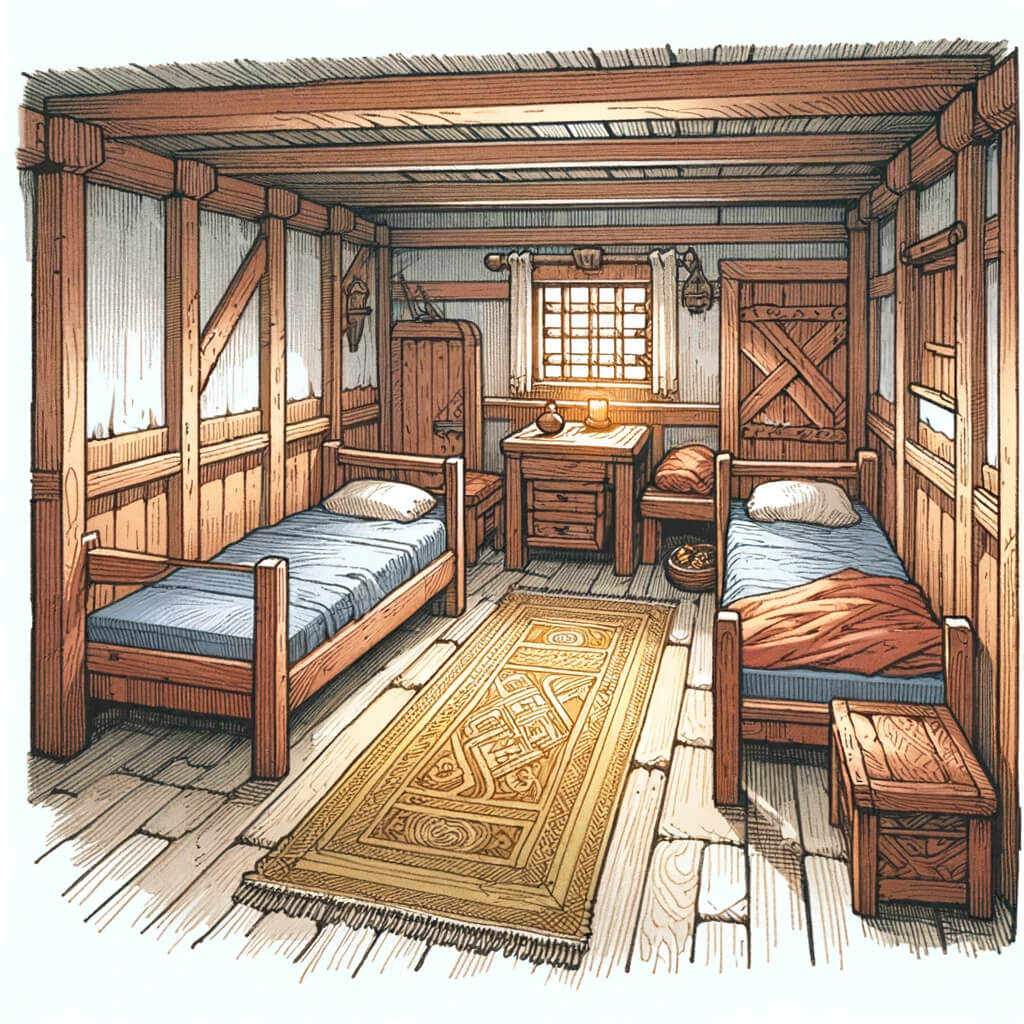 Im Westen von Siegelstein, eingebettet zwischen den geschäftigen Straßen und nahe dem pulsierenden Hafen, lädt die Taverne „Das goldene Eisen“ mit ihrer unscheinbaren Fassade zum Verweilen ein. Das Gebäude, weder schäbig noch luxuriös, strahlt eine einladende Atmosphäre aus, mit warmem Licht, das durch die Fenster scheint und die Vorbeigehenden anzieht. Eine robuste Holztür steht offen, ein Zeichen der Gastfreundschaft, die in ihrem Inneren wartet. An der Außenwand klettert Efeu empor, was dem Ort einen Hauch von Natürlichkeit und Alter verleiht. Über dem Eingang hängt ein schlichtes, aber stolzes Schild mit dem Namen der Taverne, ein Versprechen von guter Gesellschaft und wärmenden Getränken.