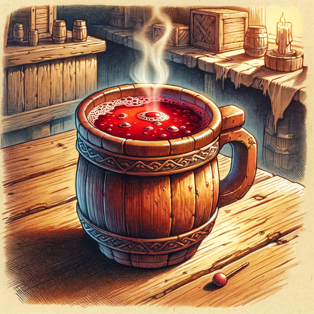 Die „heiße Elsa“ hat ihren Namen von einer amüsanten Begebenheit, bei der Elsa versehentlich einen experimentellen Trunk kreierte, der sie selbst für Stunden in eine wohlige Wärme hüllte, während sie im Winter Schnee schippte. Die Inhaltsstoffe sind ihr bestgehütetes Geheimnis. Trinken die Charaktere eine „heiße Elsa“ erhalten Sie den Zustand „Eine heiße Elsa hilft bei allem“.