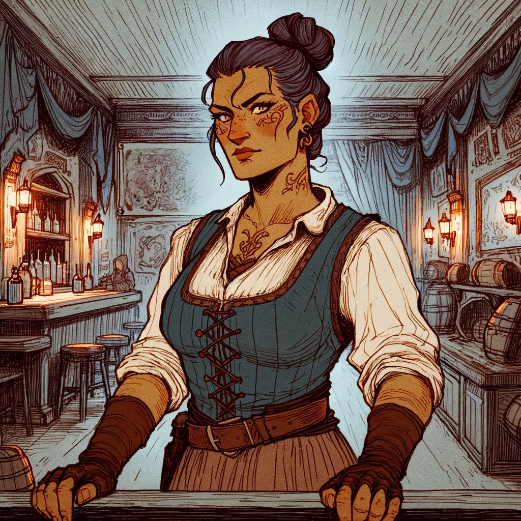 Marlene Dunkelherz, eine Menschenfrau mit einer rauen Schönheit, führt die laszive Flunder mit einer strengen Hand. Ihre dunklen Haare sind streng nach hinten gebunden, und ihre durchdringenden Augen verpassen nichts, was in ihrem Etablissement vor sich geht. Marlene kennt die Geheimnisse der Stadt und bewahrt sie hinter einem verschlossenen Lächeln. Sie ist immer auf ihren eigenen Profit aus, auch wenn sie dafür anderen schaden muss.
