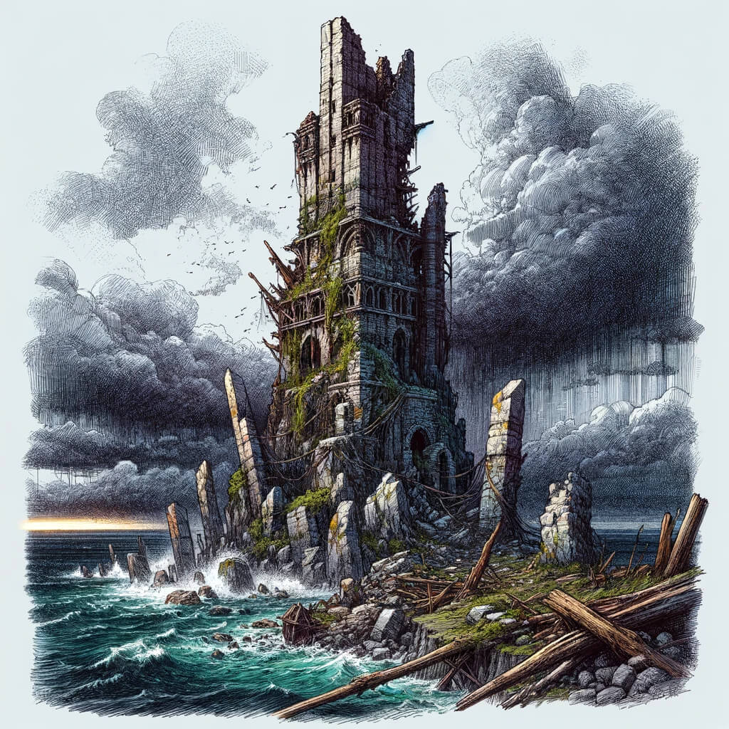 Während die Charaktere den alten Leuchtturm untersuchen, könnten herabstürzende Trümmerteile eine Gefahr darstellen. Ein Trümmerteil könnte den Boden zerstören und die Charaktere in einen alten Tunnel stürzen lassen, den die Charaktere erkunden können. Vorsicht ist geboten, da der Tunnel unter das Wasser führt. Am Ende des Tunnels, in einer kleinen Kammer, stoßen die Charaktere auf einen Altar des Gottes Noreon, der von einem wütenden Wasserelementar beschützt wird.