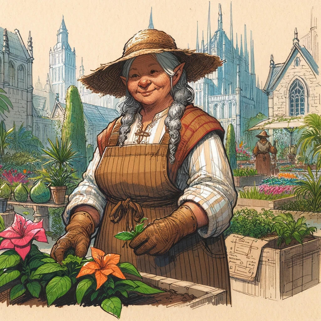 Der Garten wird von der Stadt Weidenburg verwaltet, jedoch ist die tägliche Pflege und Leitung in den Händen von Elise Grünthal, einer älteren Halblingsfrau und Gärtnermeisterin. Elise ist eine robuste Frau mit einer ruhigen Ausstrahlung und einem stets freundlichen Lächeln. Sie trägt stets praktische Kleidung und einen Strohhut und ist fast immer dabei, die Pflanzen zu pflegen oder Besucher zu beraten. Ihre tiefe Liebe zur Natur und ihr Engagement für den Erhalt der Schönheit des Gartens sind weithin bekannt und geschätzt.