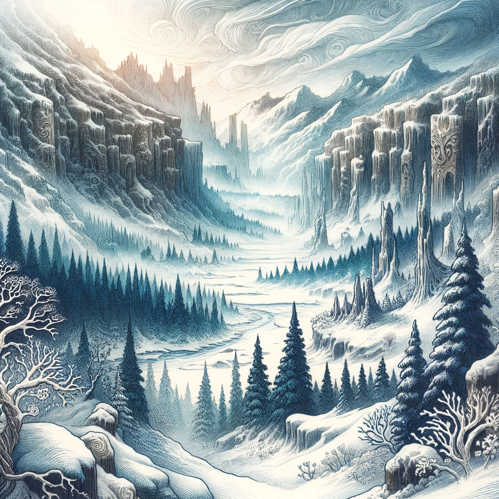 Die Nordlande, ein eisiges und unerbittliches Reich, erstrecken sich im äußersten Norden des Kontinents Alands. Geprägt von eisigen Winden und endlosen Schneelandschaften, ist es ein Land der Stärke, Ausdauer und des Überlebenskampfes. Hier haben sich Völker an ein Leben in extremer Kälte und Isolation angepasst und eine Kultur entwickelt, die so robust ist wie ihre eisige Heimat.