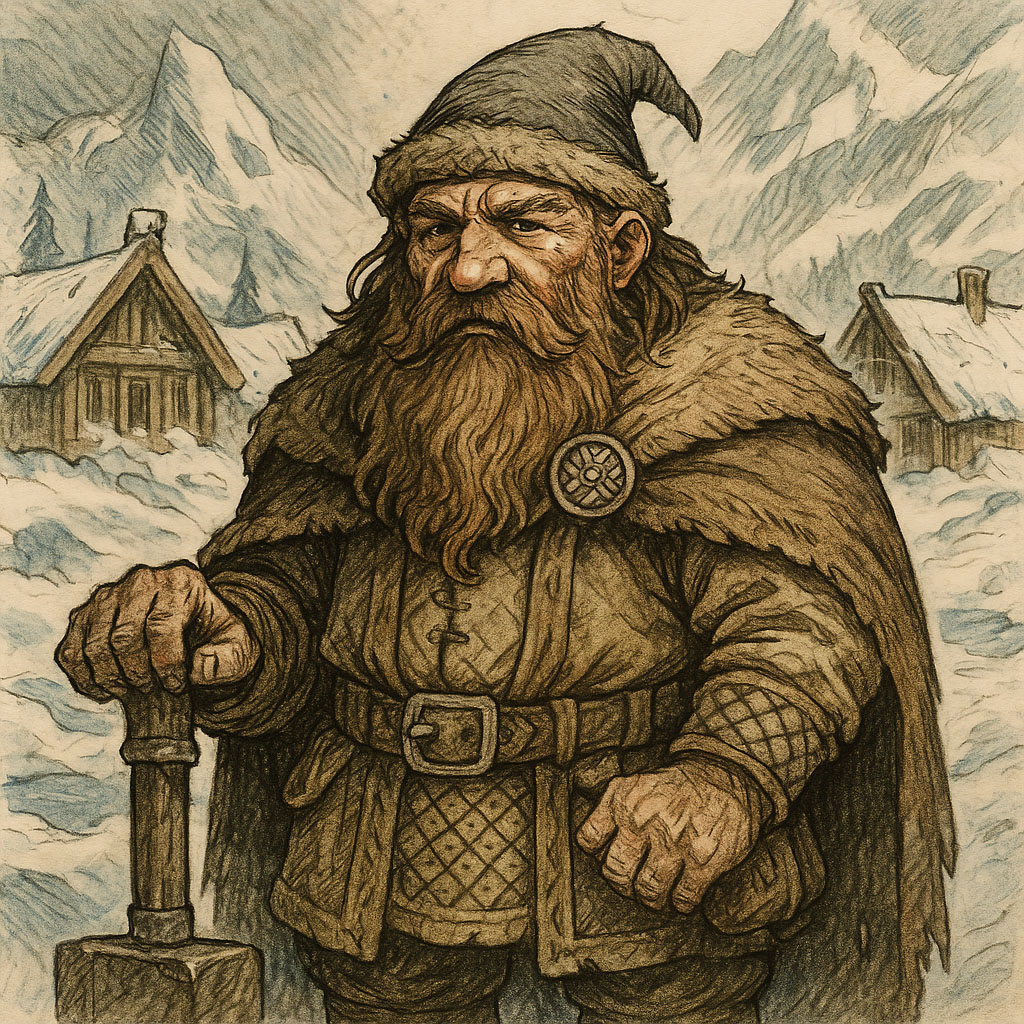 - Kren Schneehaug – älterer Zwerg, misstrauisch, aber geschäftstüchtig.